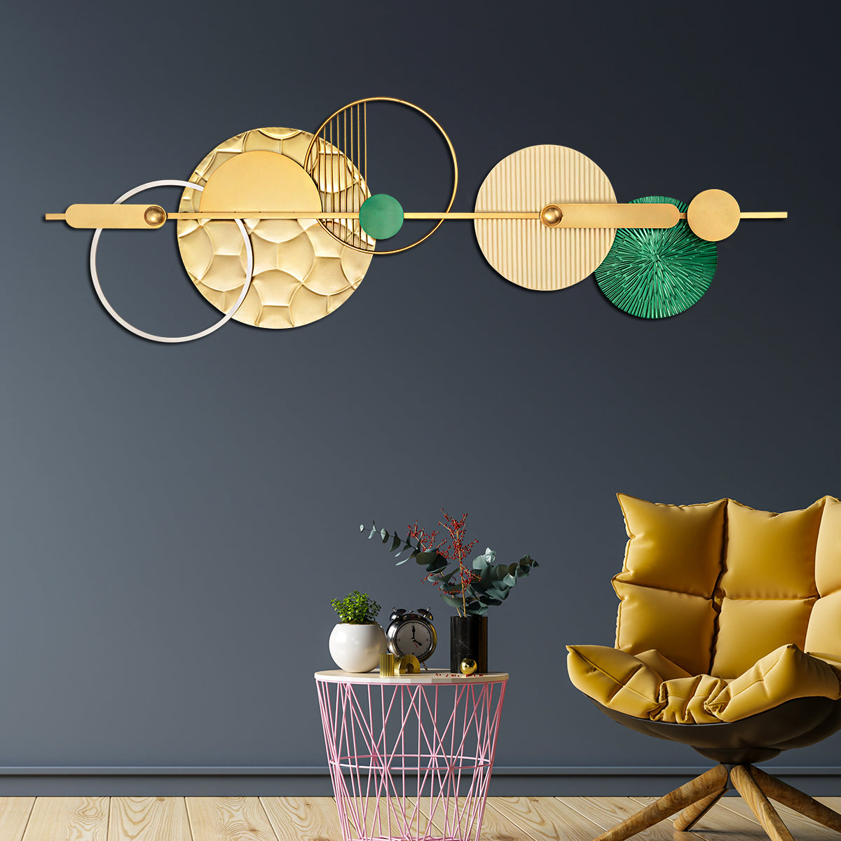 A happy place calls for this stylish wall art that foster a homely and happy environment by drawing attention to your walls The golden circular embellishments...