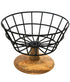 Fruit Basket Kitchen Stand vegetable basket rack stand for kitchen | Round Net baskets for storage Metal basket fruit stand storage baskets with wooden base stand (BLACK)