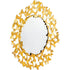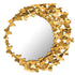 This collection is made from durable metal in an antique gold finish. A colony of golden butterflies frames the round mirror, giving the piece an ethereal quality.